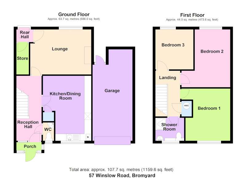 From High Street, turn left in front of the community centre and first right into Tenbury Road. Opposite Co-Op, turn left into Winslow Road. Proceed up the hill and the property is on the left-hand side - see ‘For Sale’ board.